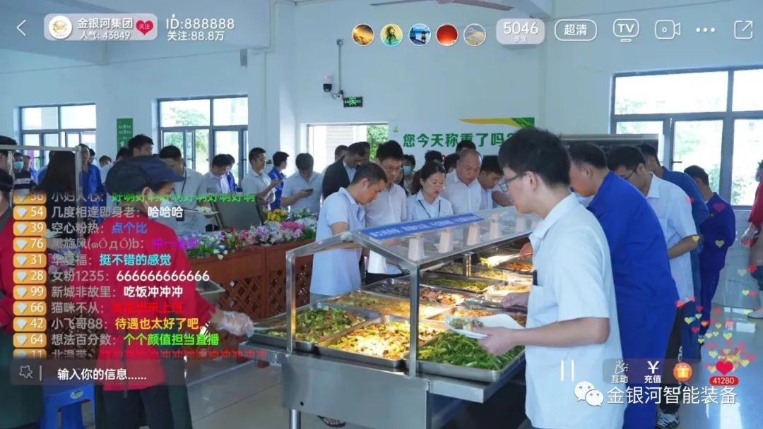 中午12点厂里的员工都下班了,大家都往饭堂走,这个时候金银河财务部-陈映余通过直播方式带大家去视觉感受一下金银河B区饭堂。