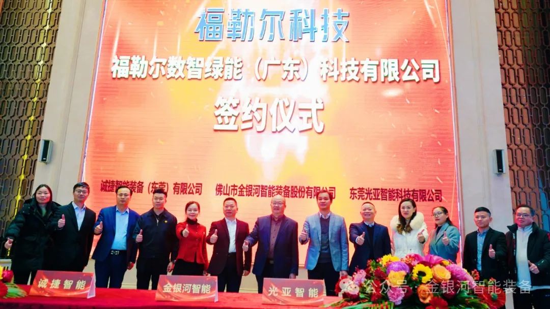 金银河智能董事长张启发、诚捷智能董事长呙德红以及光亚智能董事长曾志永签署了合作协议,三家公司的专业团队将共同入驻福勒尔公司,在新能源电池领域上深化合作,进行优势互补,共同致力于加强整合新能源电池装备产业链,进一步拓展业务发展空间。
